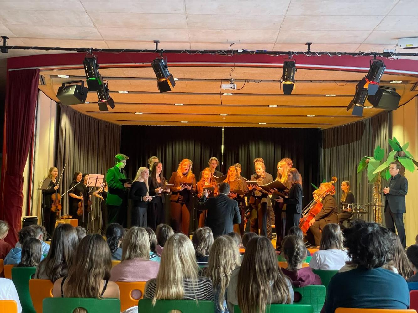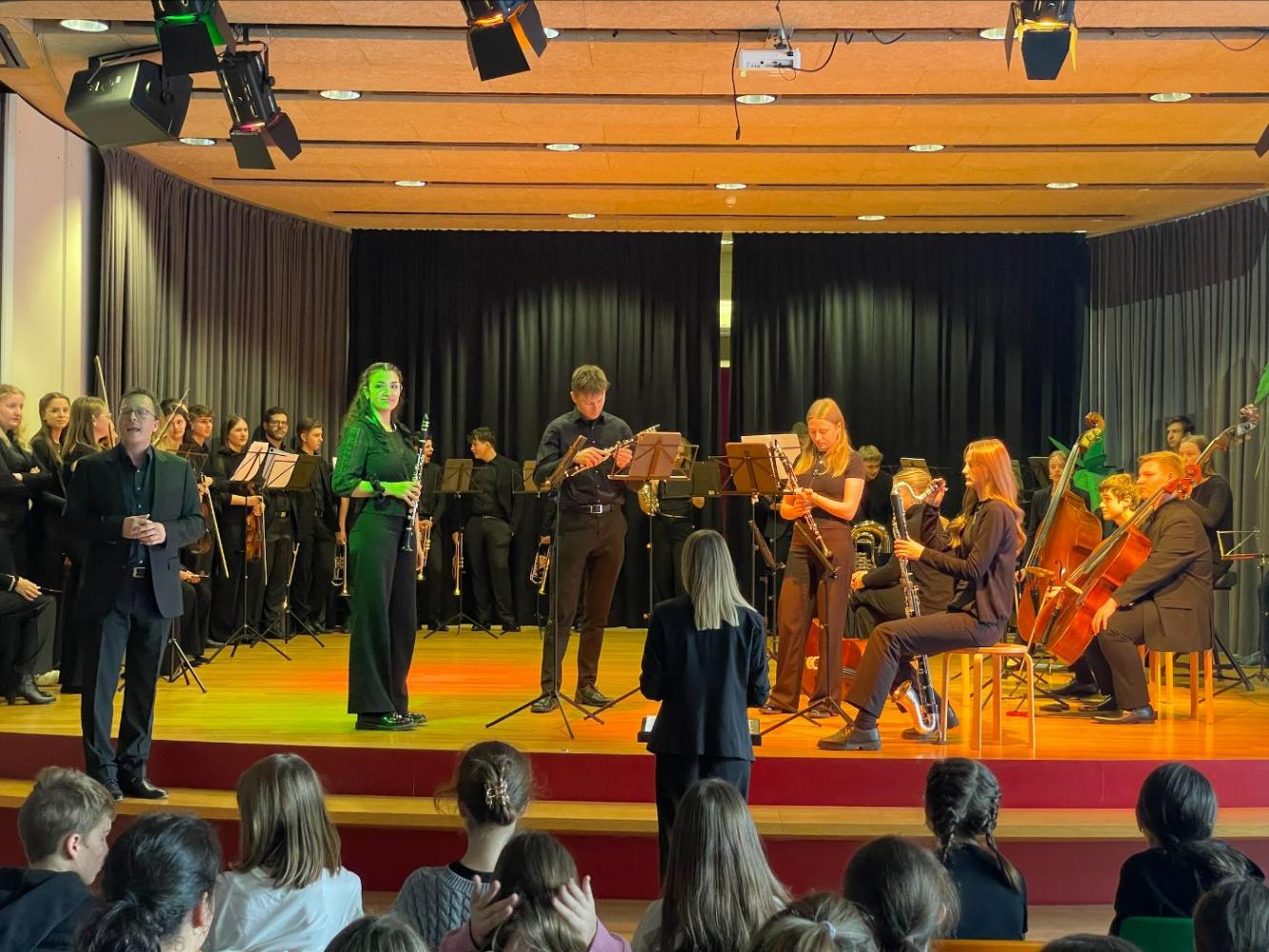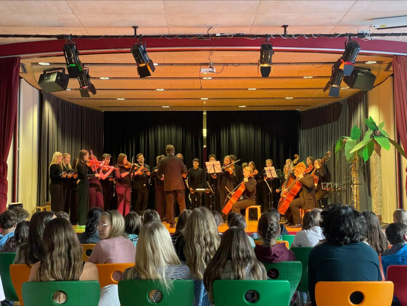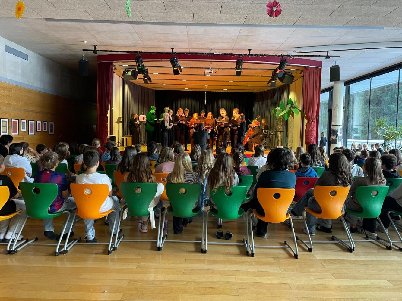 Am Freitag, den 7. November, stellte sich das Musikgymnasium Innsbruck mit einem abwechslungsreichen und kurzweiligen Konzert bei den Klassen 1m bis 4m vor. Mit eindrucksvollen vokalen und instrumentalen Ensemblestücken aus der Musikgeschichte begeisterten die jungen Musikerinnen und Musiker die Kinder und gaben einen spannenden Einblick in ihre musikalische Ausbildung.