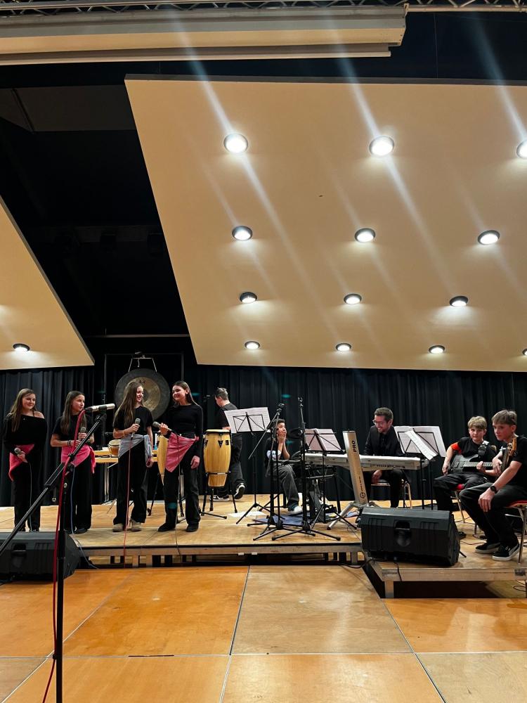 Gemeinsam mit ihren Musiklehrpersonen gestalteten die Schülerinnen und Schüler ein abwechslungsreiches Programm mit Popklassikern, mitreißenden Tanzeinlagen und Ausblicken auf Projekte, die im Laufe des Jahres noch folgen. Ein Lama, das sich überraschend auf die Bühne „verirrte“, sorgte für heitere Momente. Den Abschluss bildete ein gemeinsamer Song, bei dem auch die Gäste zum Mitsingen und Mittanzen animiert wurden.